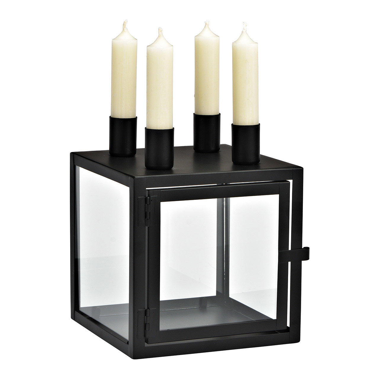 Adventskranz, Kerzenhalter auf Box aus Metall/Glas, Schwarz (B/H/T) 15x19x15cm