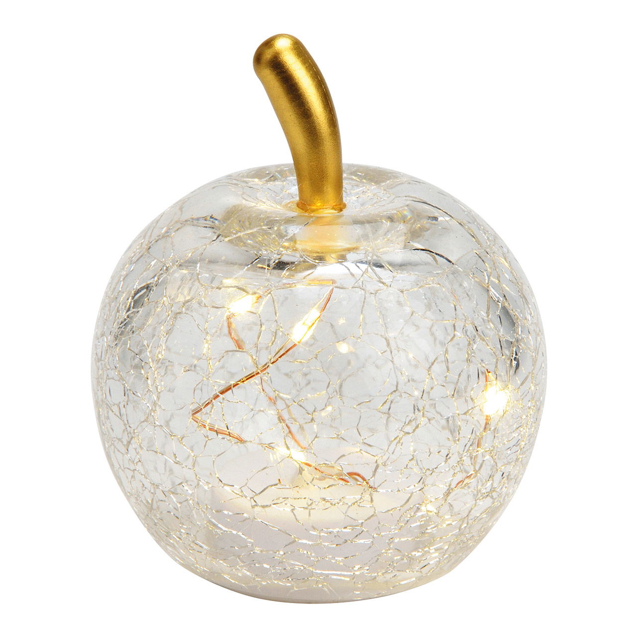 Apfel mit 5er LED aus Glas transparent (B/H/T) 7x9x7cm mit Timer, Batteriebetrieb CR2032 nicht enthalten