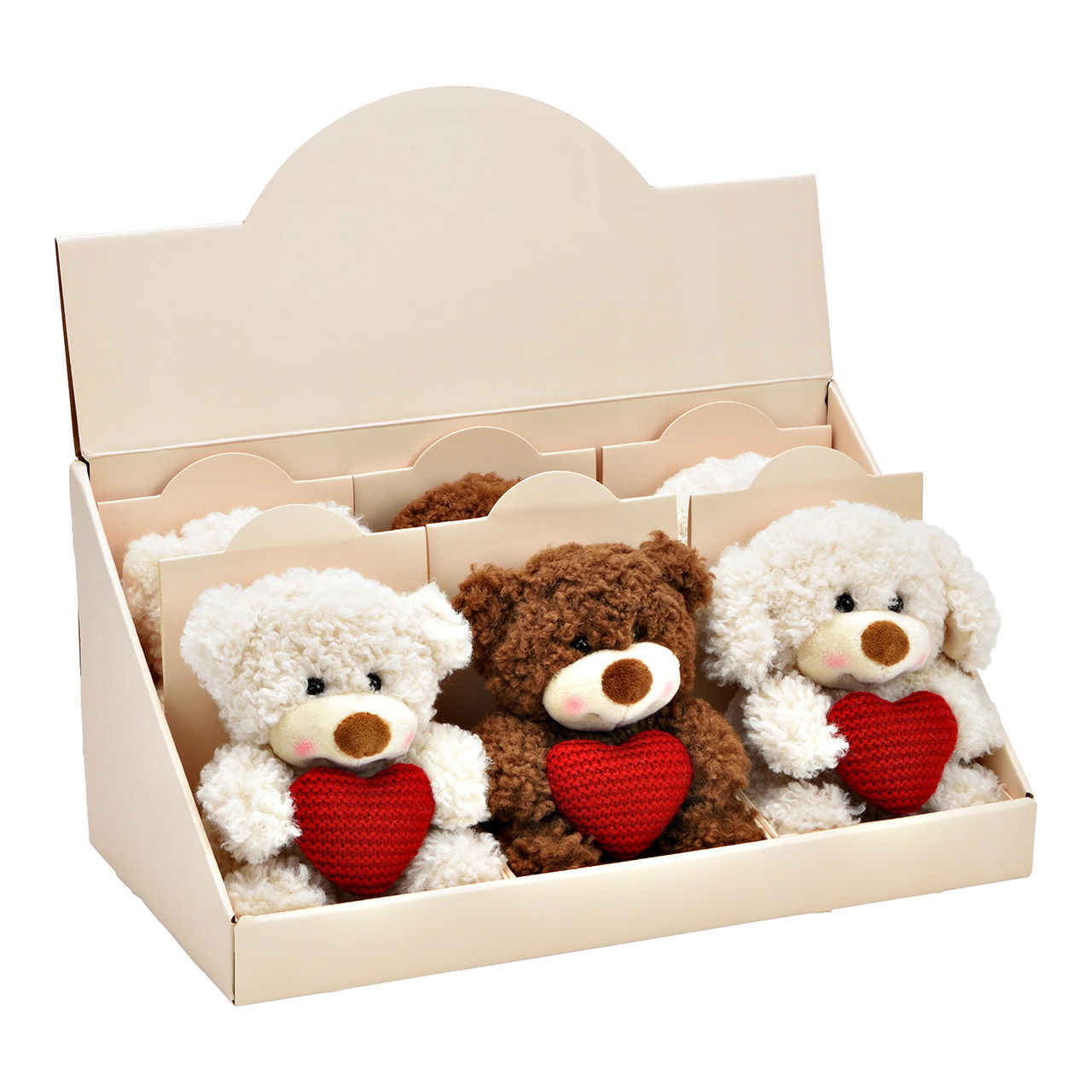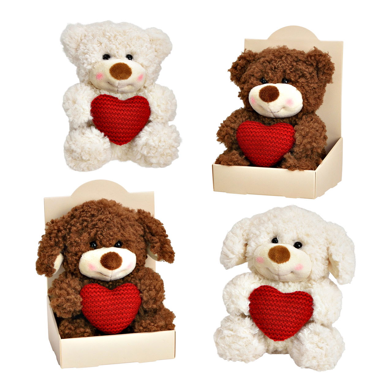 Bär und Hund mit Herz aus Plüsch, 4-fach, Weiß/Braun (B/H/T) 11x14x10cm