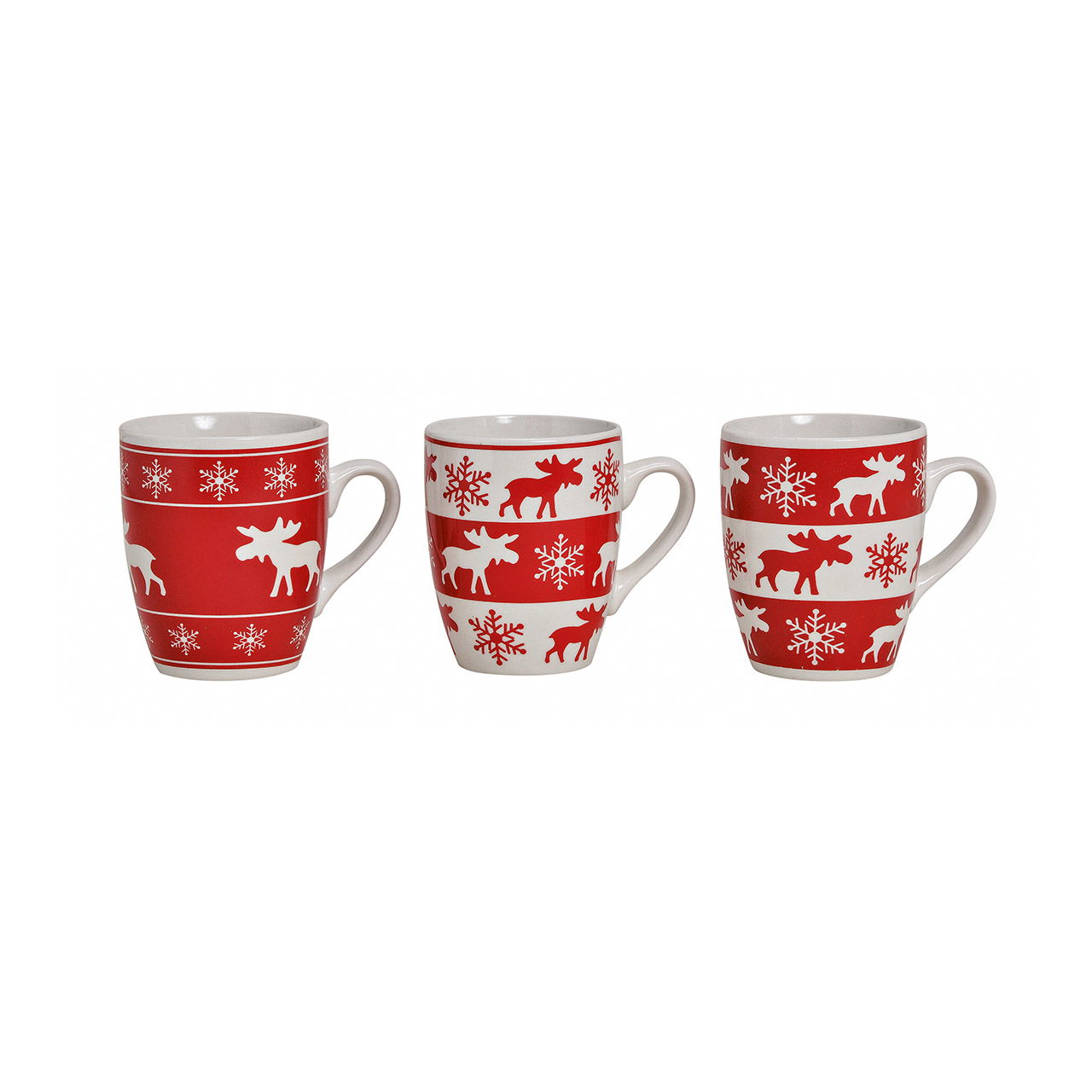 Becher Elchdekor aus Keramik rot-weiß, 3-fach sortiert, 280 ml (B/H/T) 11x10x8 cm