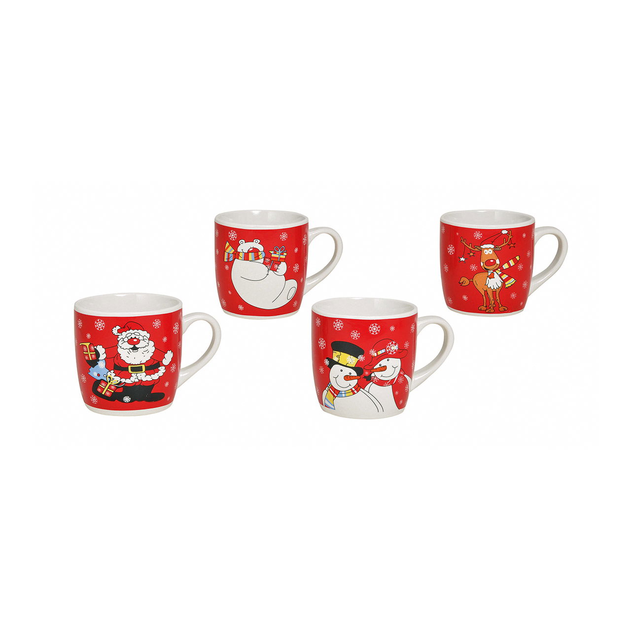 Becher rot mit Weihnachtsmotiven aus Keramik, 4-fach sortiert (B/H/T) 11x8x8 cm, 200ml