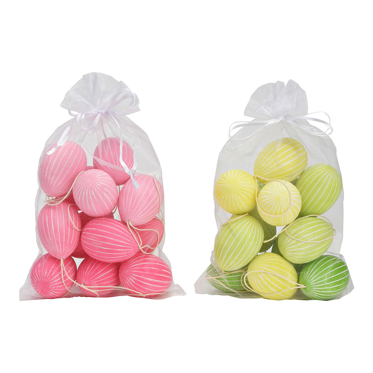 Hänger Ostereier aus Kunststoff, 2-fach, 12-Set, Grün/Gelb/Rosa (B/H/T) 4x6x4cm/15x17x9cm