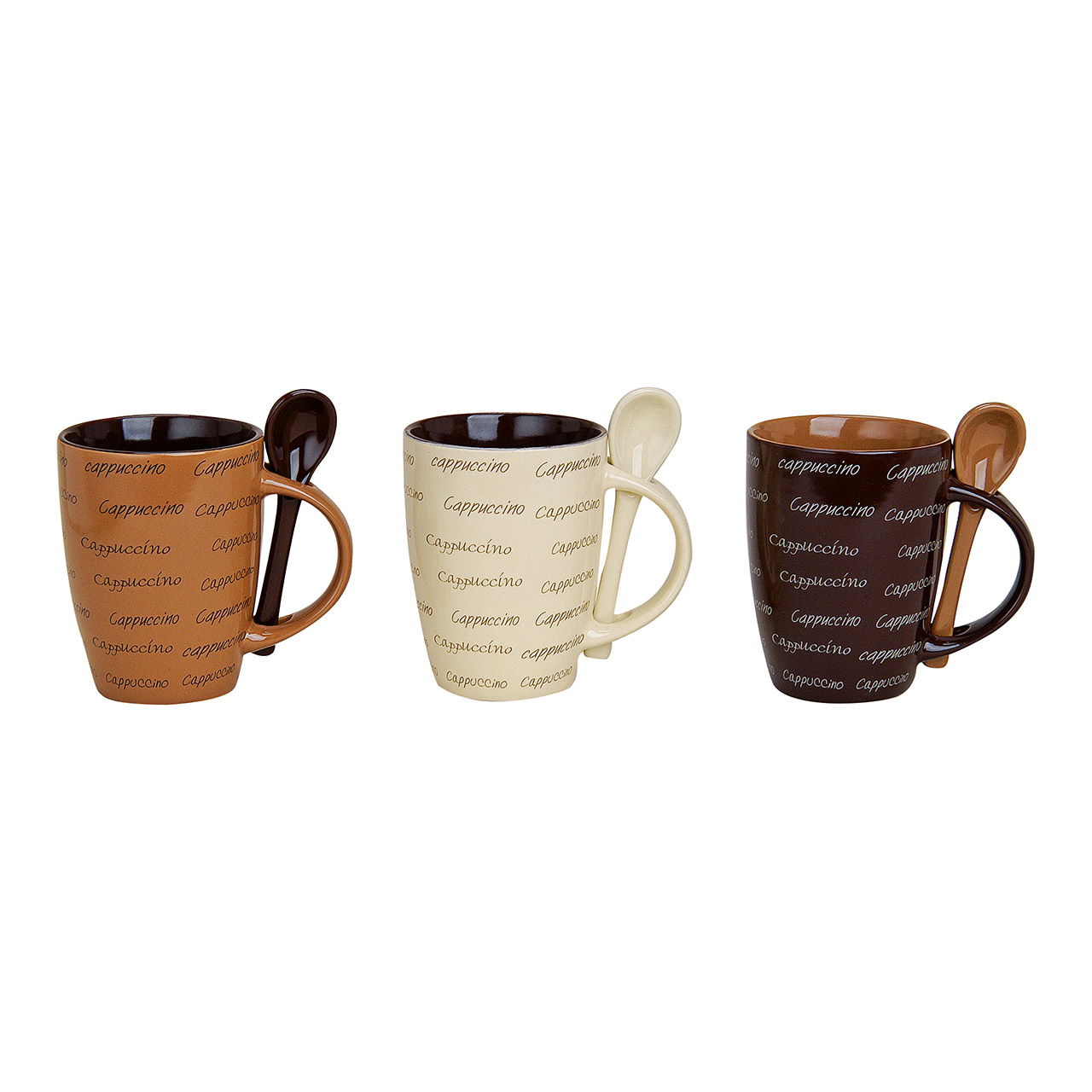Art. Nr.: 10018760 Becher mit Löffel Cappuccino, aus Keramik, sortiert, 10 cm 250ml