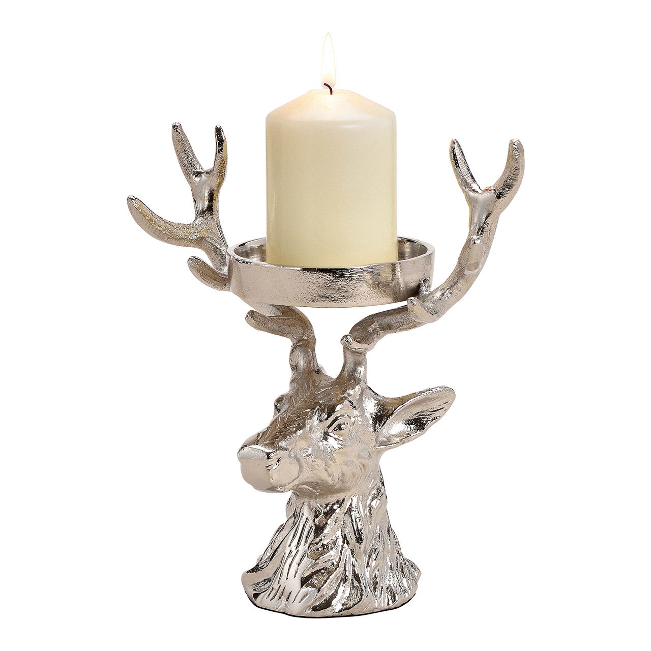 Kerzenhalter Hirschkopf aus Metall Silber (B/H/T) 19x20x12cm
