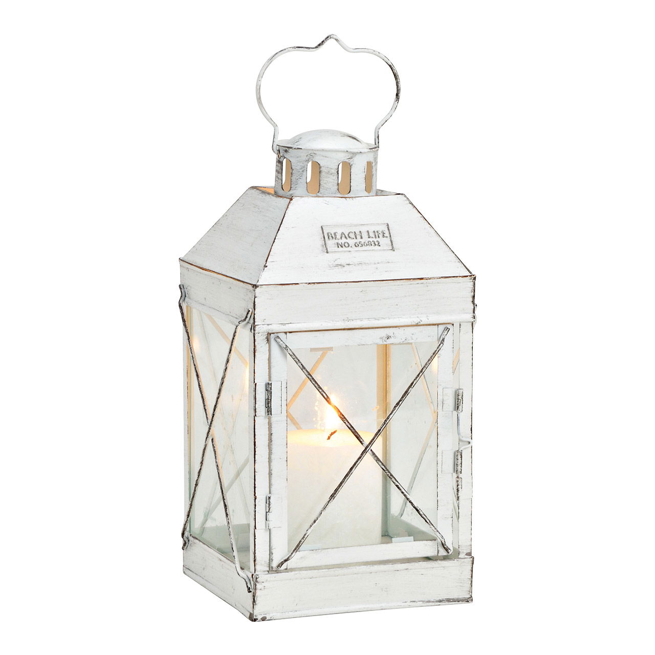 Laterne in weiß aus Metall/Glas, B14 x T14 x H27 cm