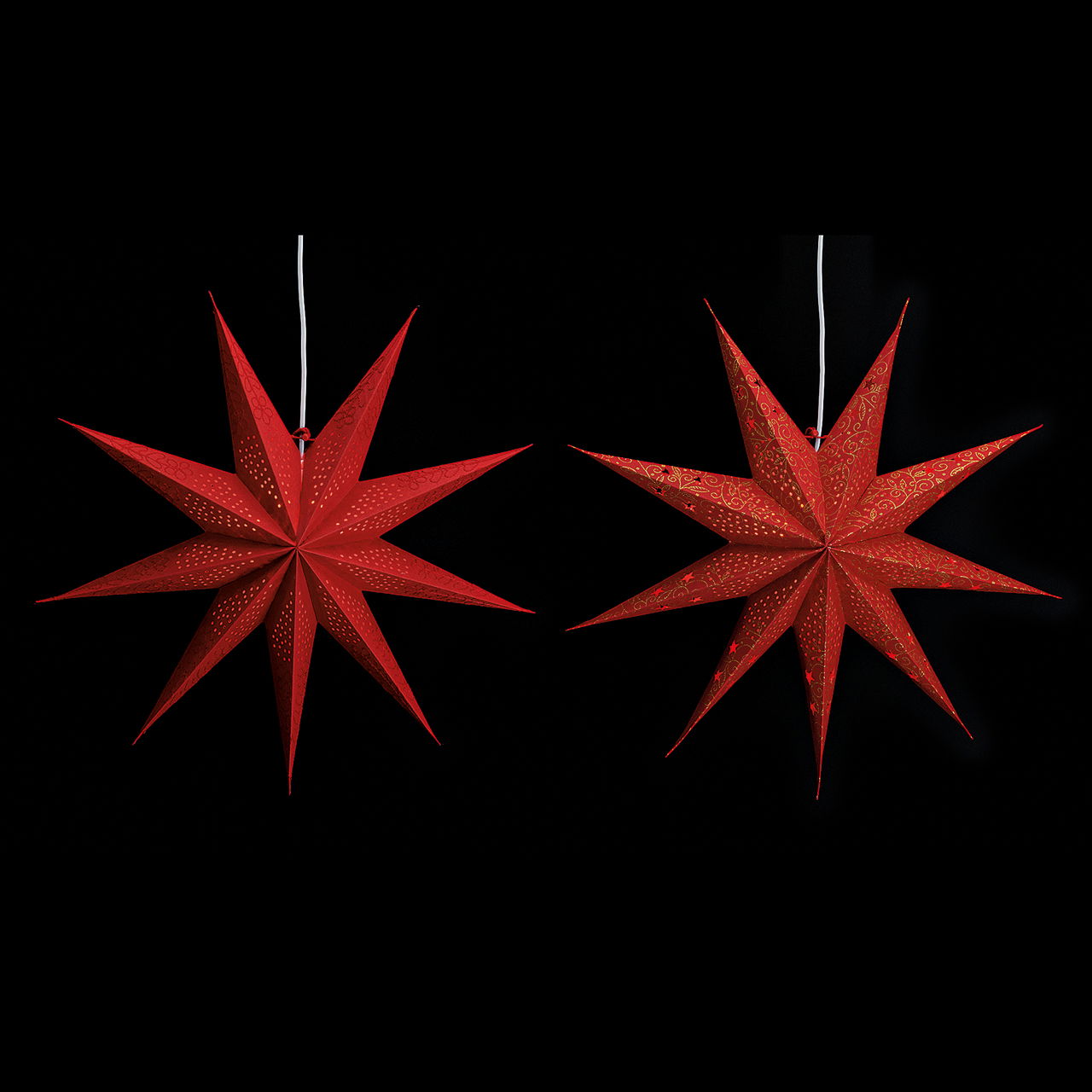 Leuchtstern aus Papier in rot mit 9 Zacken, 2-fach sortiert, 60 cm