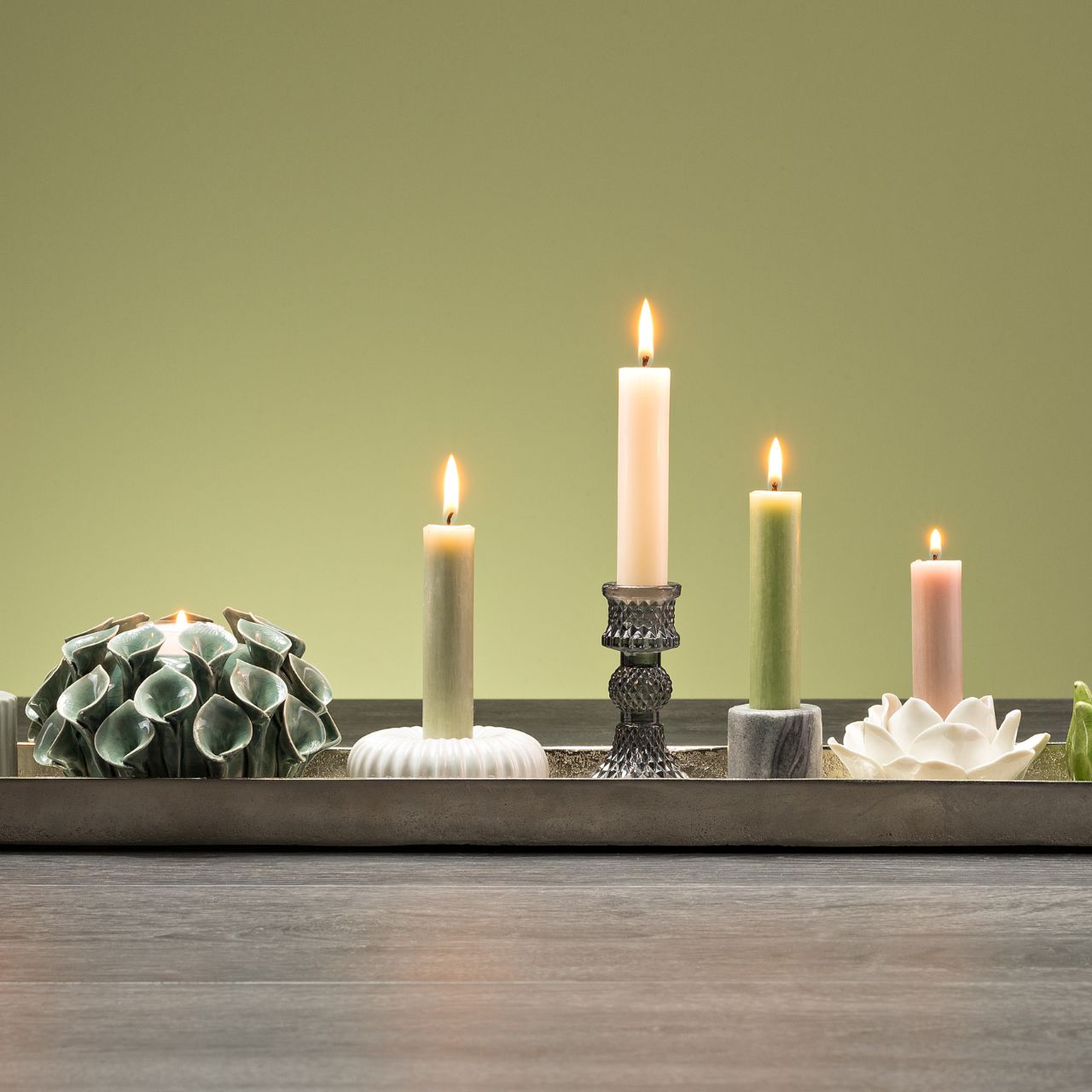 Art. Nr.: 10042065 Stabkerze durchgefärbt aus Wachs salbei (H) 10cm Ø2cm Brenndauer ca. 4 Std.