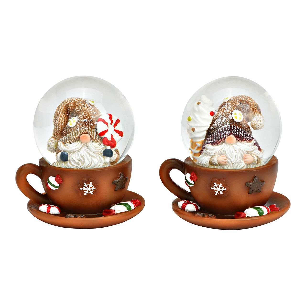 Schneekugel Wichtel auf Tasse Weihnachtsmotiv aus Glas/Poly, 2-fach, Braun (B/H/T) 8x8x7cm