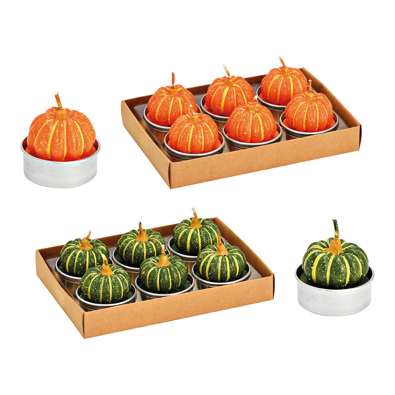 Teelicht Kürbis aus Wachs, 6er-Set, 2-fach, Orange/Grün (B/H/T) 4x4x4cm