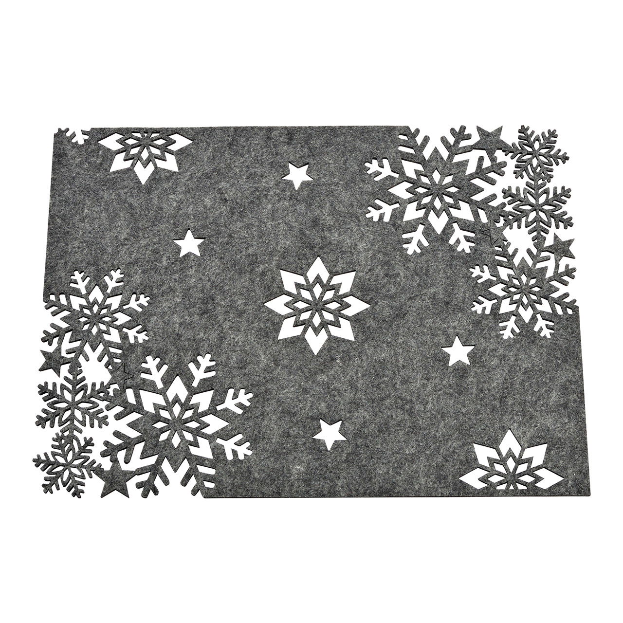 Tischset Schneeflocke Dekor aus Filz grau (B/H) 40x30cm