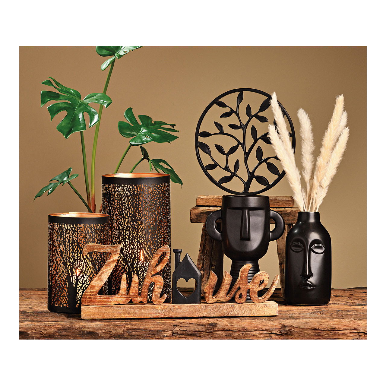Vase Gesicht nur für Trockenblumen aus Keramik Schwarz (B/H/T) 8x15x9cm