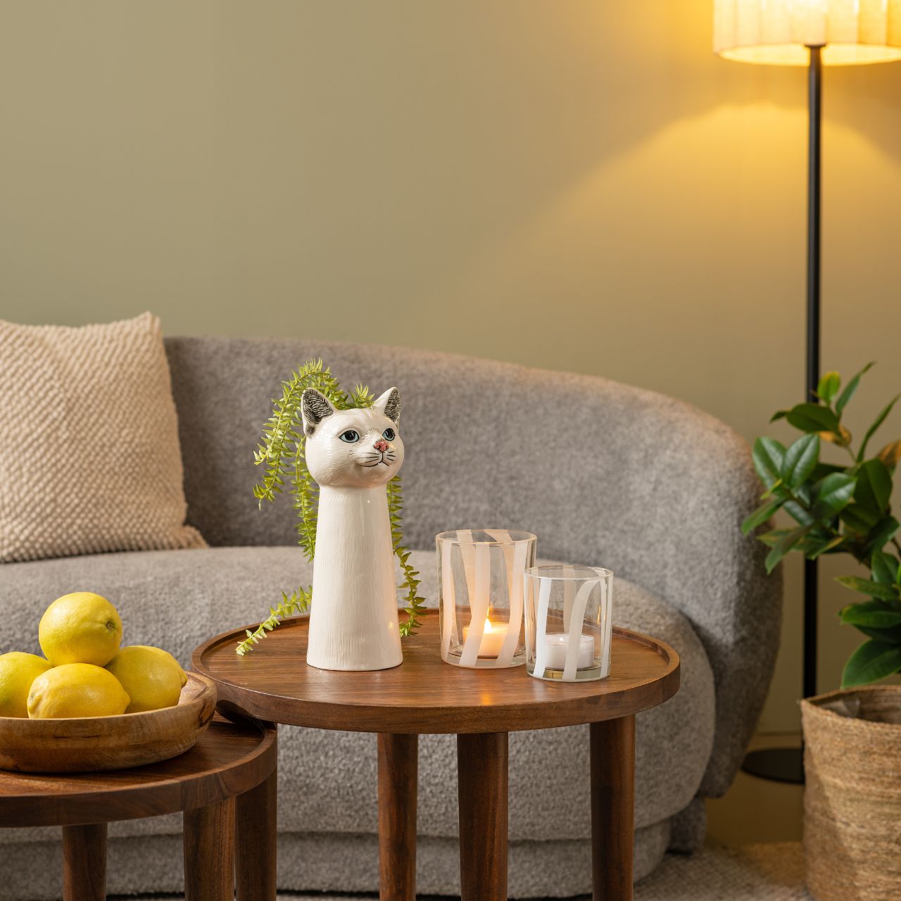 Elegante Keramikvase mit Katzenkopf-Design, ideal für Einzelhändler und Innenarchitekten. Die weiße, hochwertige Verarbeitung bietet Langlebigkeit und Attraktivität im gewerblichen Umfeld. Perfekt für die stilvolle Präsentation und vielseitige Dekoration in modernen Einzelhandelsräumen. Optimal für Umsatzsteigerung durch ansprechende Ästhetik.