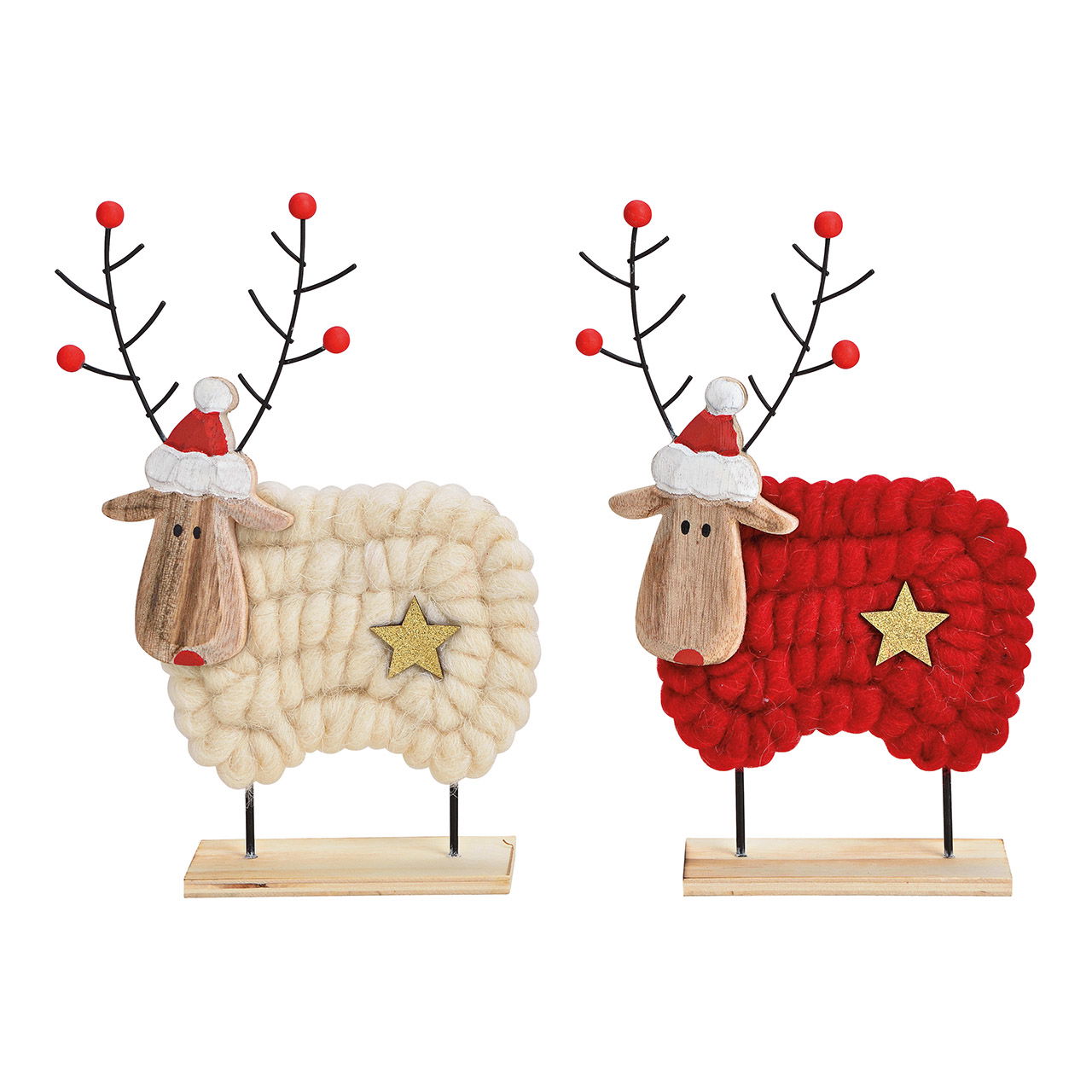 Aufsteller Elch aus Holz, Wolle Rot, weiß 2-fach, (B/H/T) 14x24x5cm