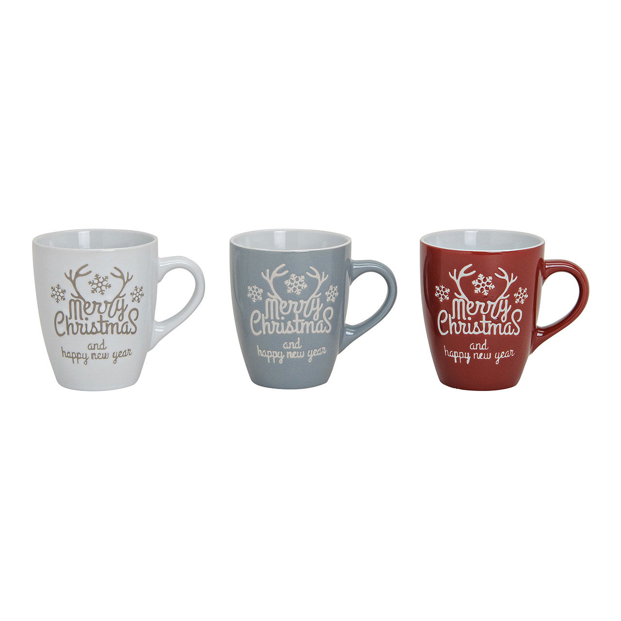 Becher Merry Christmas aus Keramik, 3-fach sortiert (B/H/T) 11x11x8 cm, 300 ml