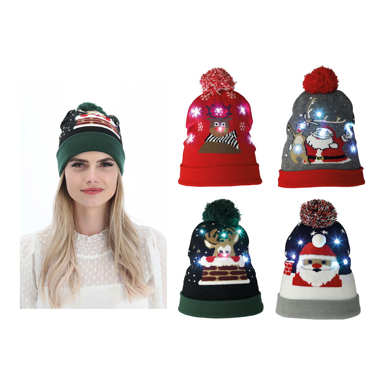 Mütze LED Weihnachten mit 6er LED aus Textil Bunt 4-fach,