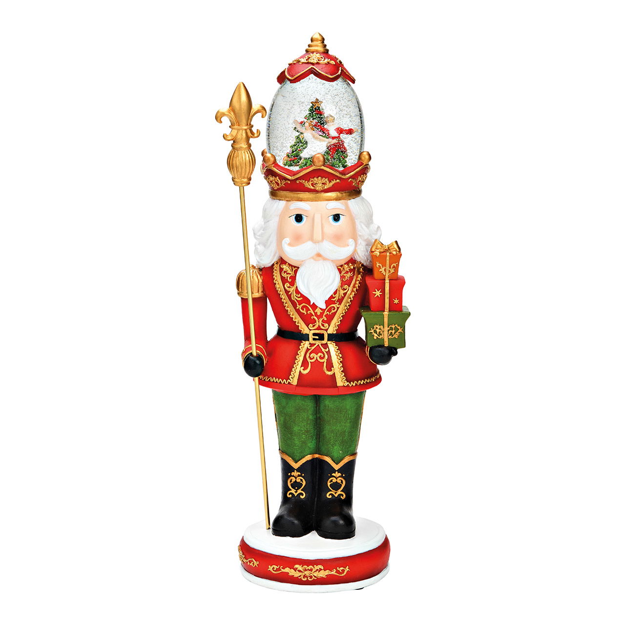 Spieluhr Nussknacker mit Schneekugel Schnee Wirbel, Batteriebetrieb 3xAA nicht enthalten, aus Poly/Glas rot (B/H/T) 15x50x14cm