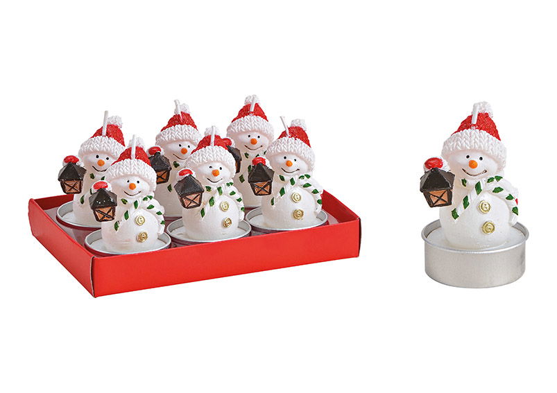 Teelicht-Set Schneemann 4x7x4cm aus Wachs Weiß 6er Set, (B/H/T) 14x9x7cm