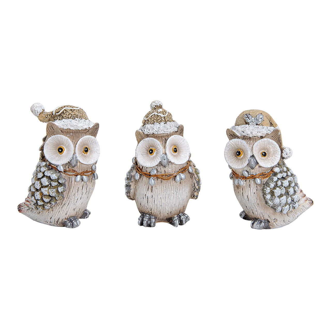 Wintereule Weiß aus Poly, 3-fach sortiert (B/H/T) 4x7x4 cm