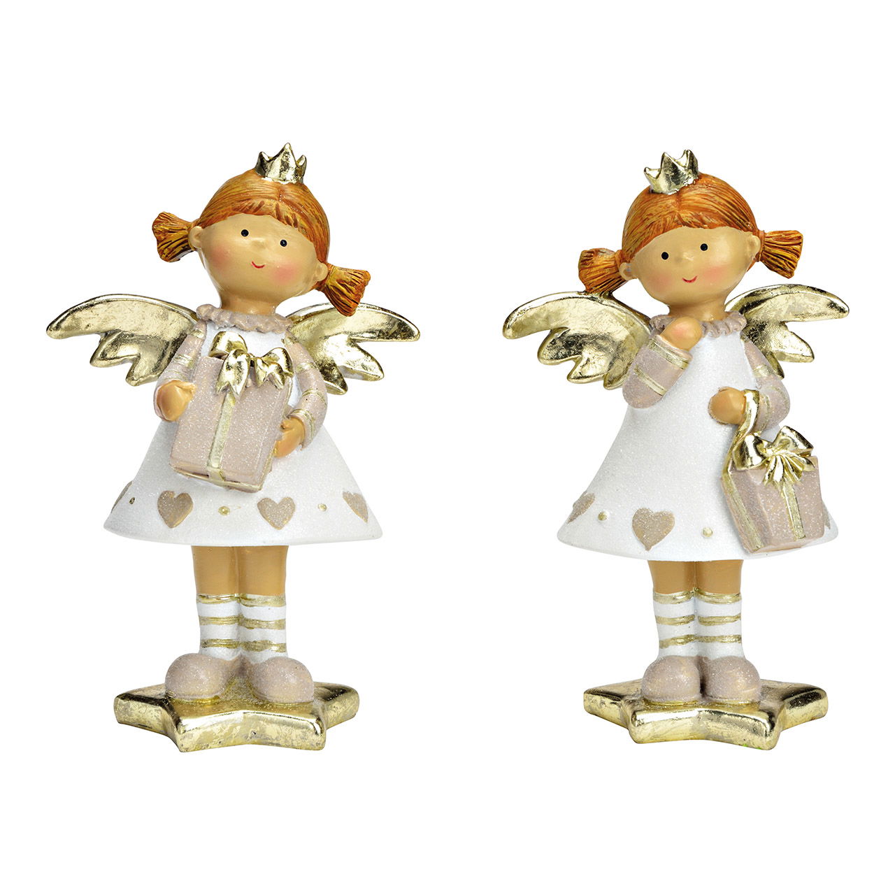 Ange avec paquet cadeau en poly or, blanc 2 fois, (L/H/P) 10x15x6cm