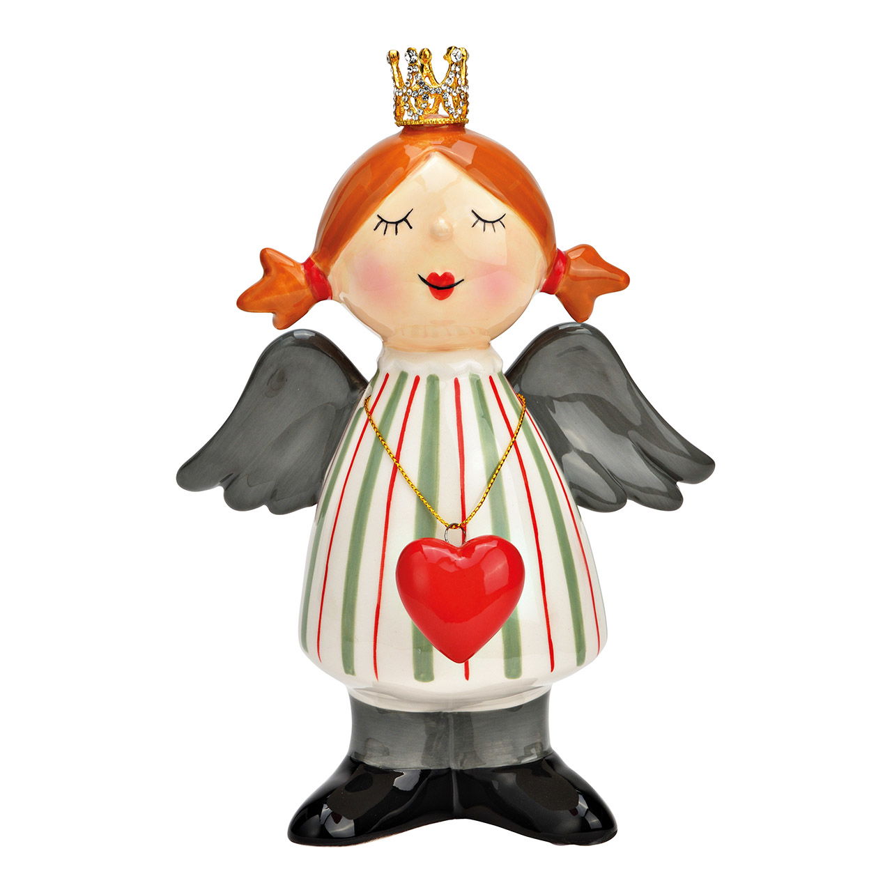 Ange en céramique vert, gris (L/H/P) 14x19x8cm