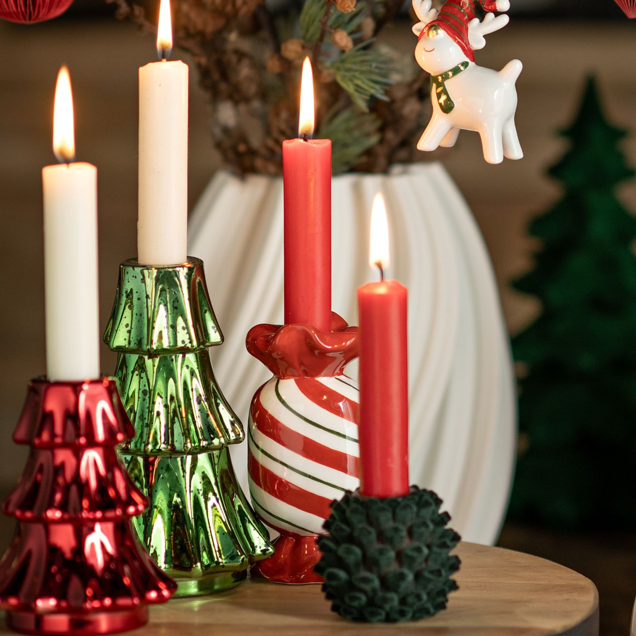 Réf. produit : 10044614 Porte-bougies à réchaud en verre, set de 3, 2 fois, rouge/vert (L/H/P) 5x7x5cm/(L/H/P) 18x7x5cm