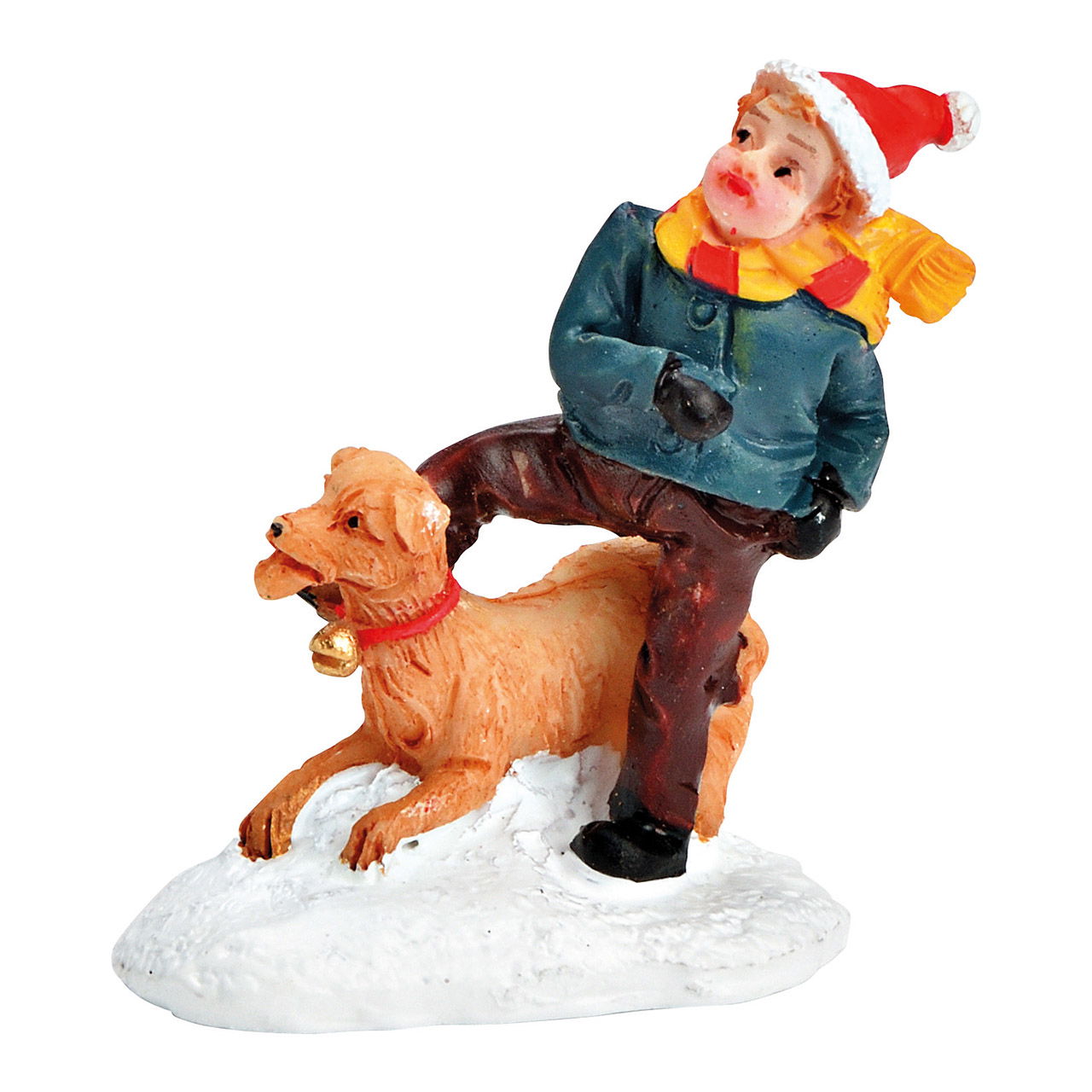 Enfant miniature avec chien en poly multicolore (L/H/P) 4x5x2cm