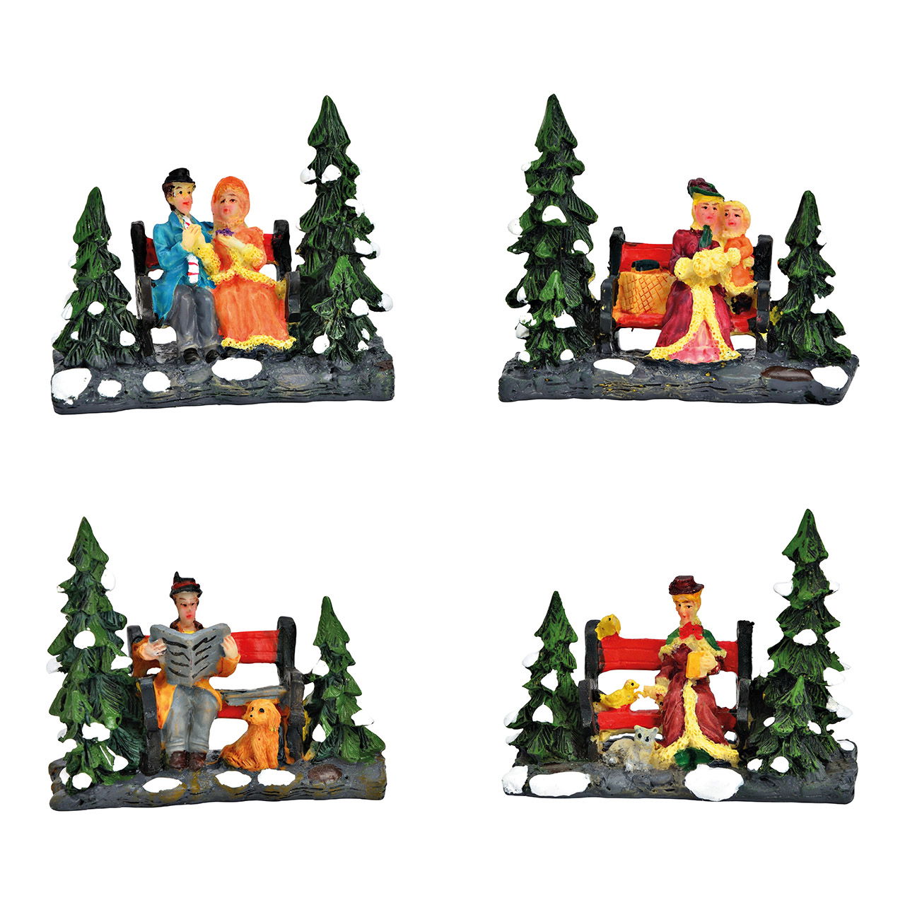 Figurine miniature Banc dans la forêt en poly multicolore 4 fois, (L/H/P) 8x7x6cm