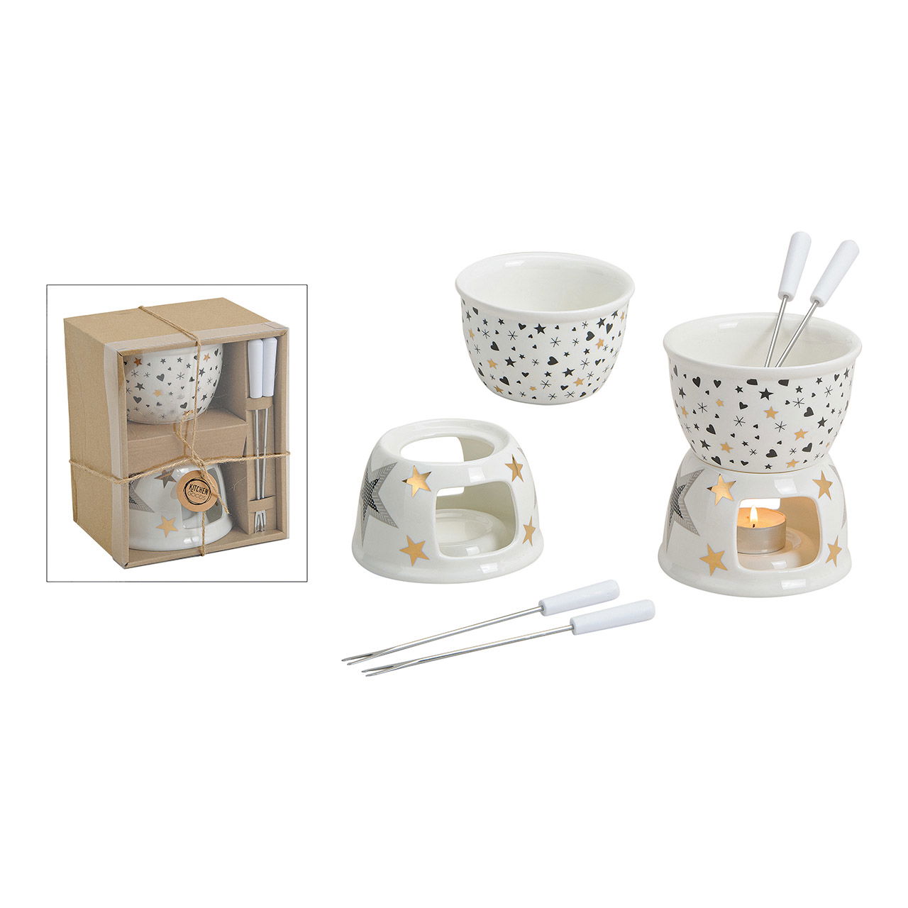 Fondue au chocolat étoile/cœur décoration en porcelaine, env.250ml, L14 x P12 cm