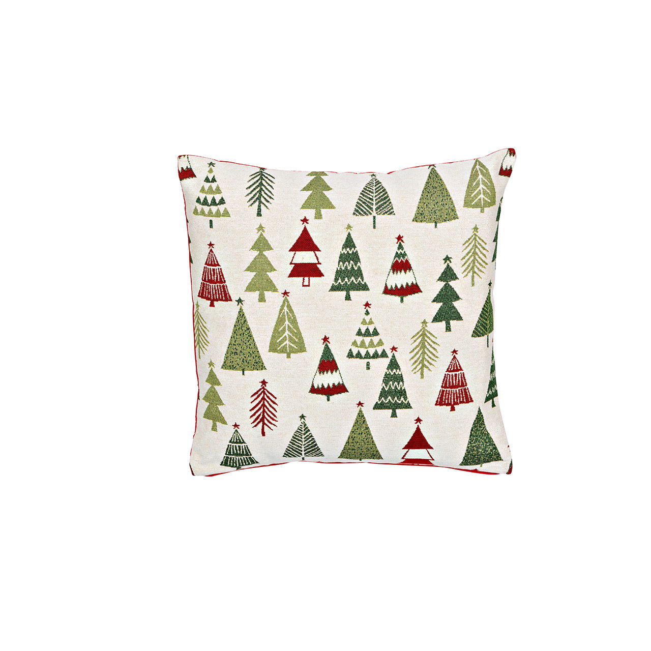 Housse de coussin décor sapin en textile, beige/vert (L/H) 45x45cm avec fermeture éclair