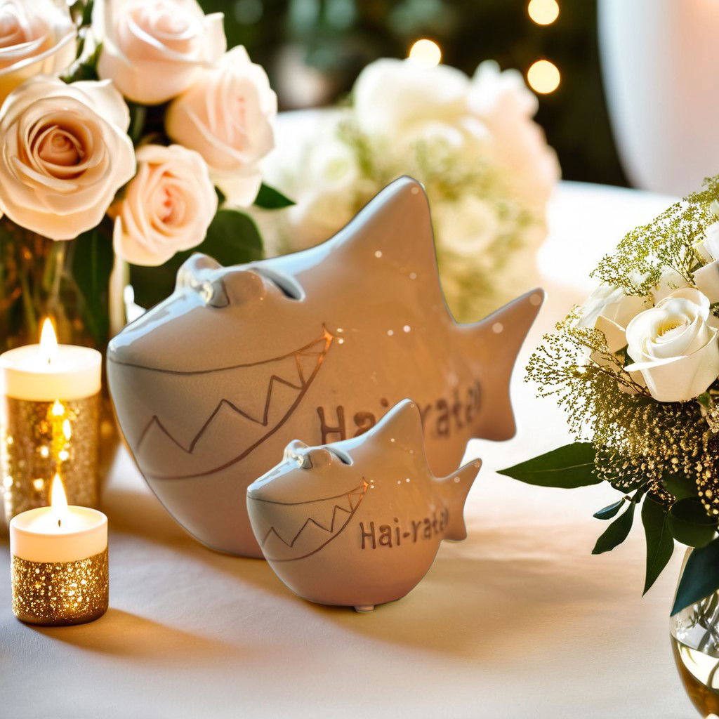 KCG Requin "Rat de requin" en céramique, blanc/or (L/H/P) 13x11x7,5cm