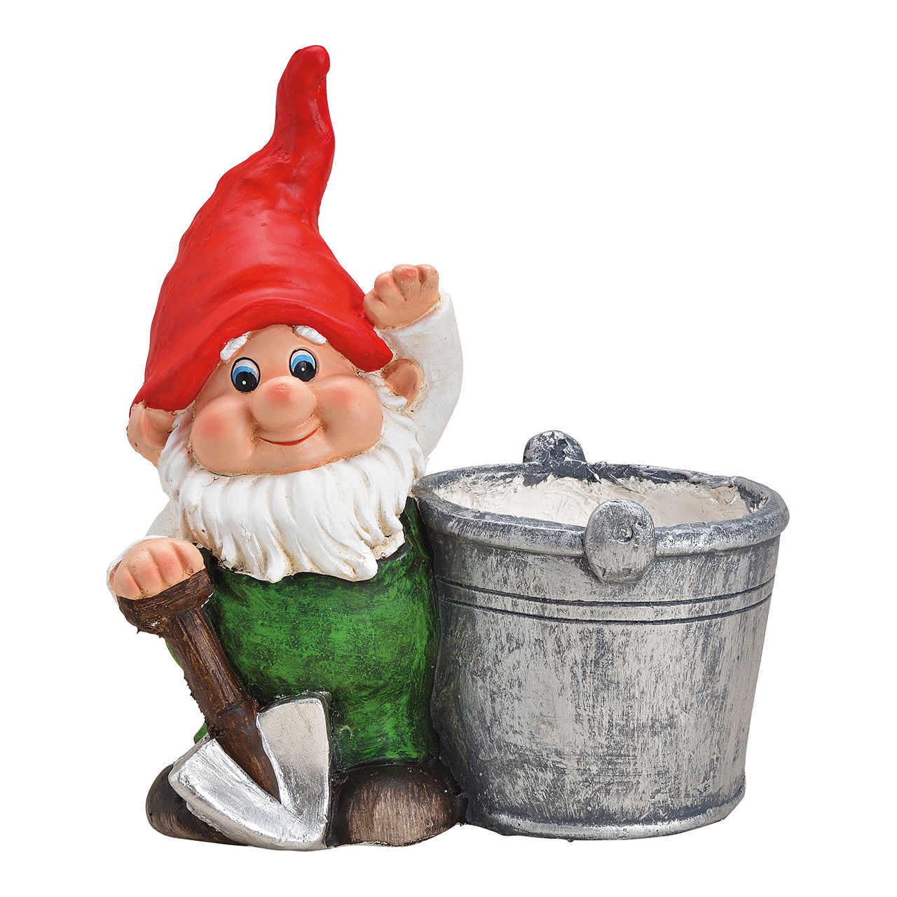 Nain de jardin avec pot de fleurs en magnésie multicolore (L/H/P) 31x33x19cm