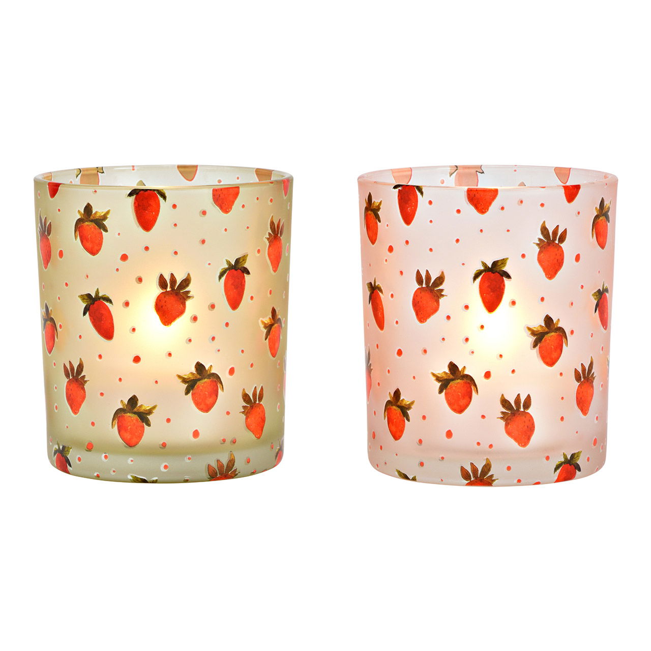 Photophore décor fraise en verre, 2 fois, rose/vert (L/H/P) 9x10x9cm