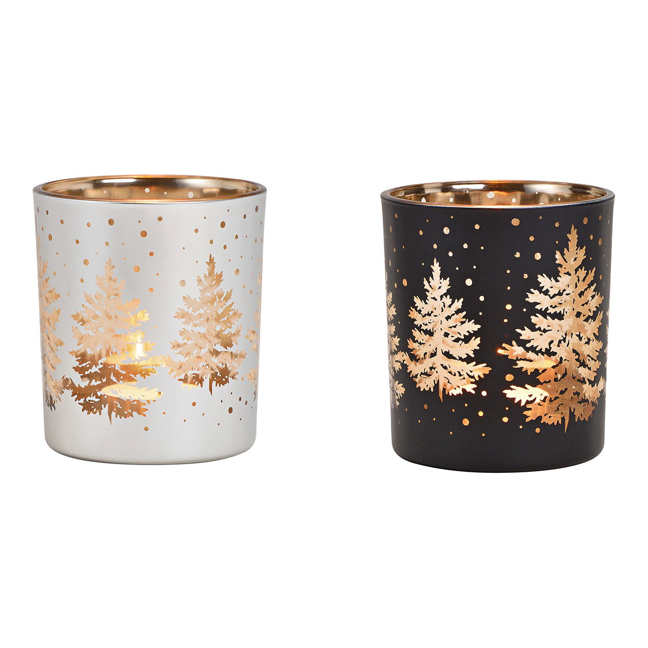 Photophore sapin en verre, noir-argenté, 2 fois, Ø 9x10 cm