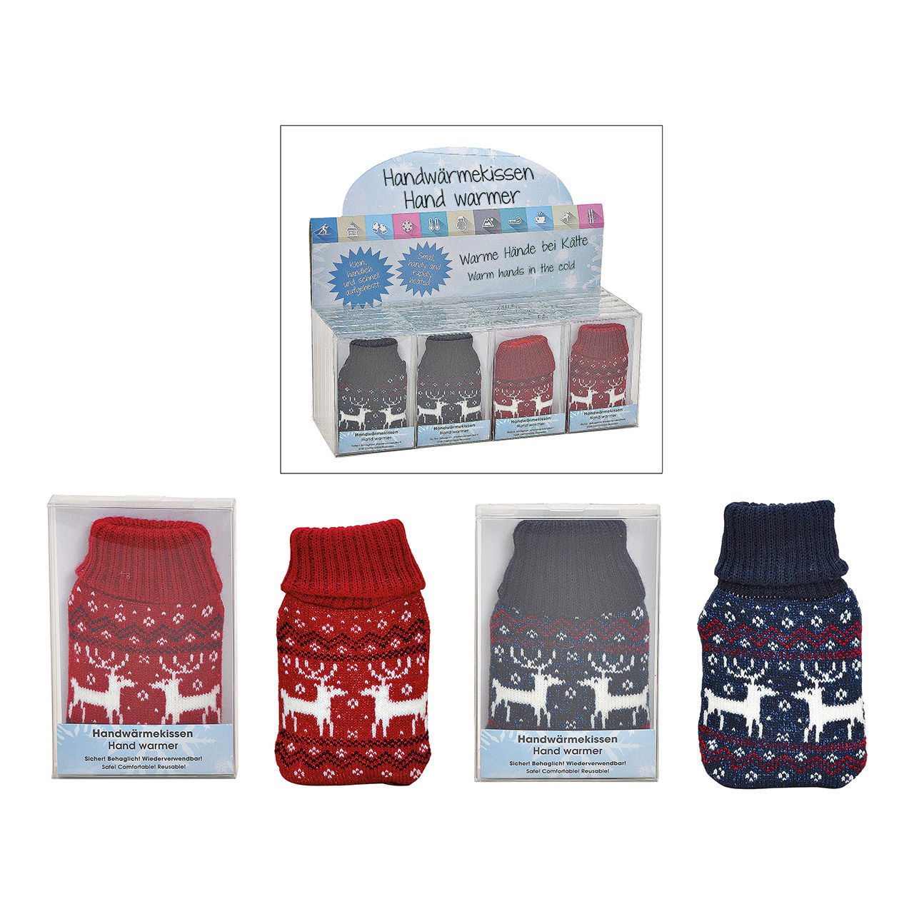 Réchauffeur de poche Elan Housse tricotée en plastique Rouge, bleu 2 fois, (L/H/P) 7x12x1cm