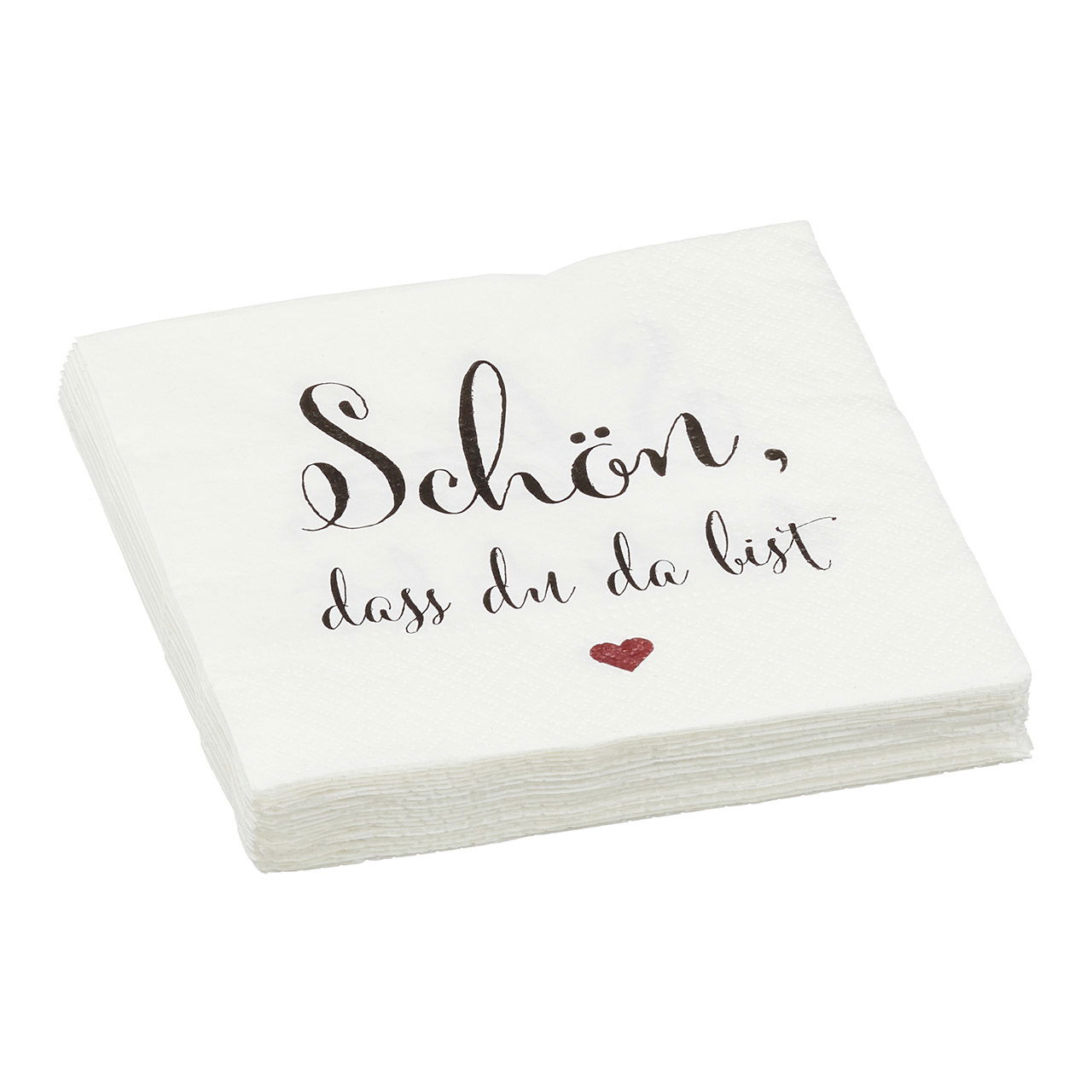Serviettes Schön, dass du da bist ist (Beau que tu es là) paquet de 20 en papier/carton blanc (l/h/p) 33x33x33cm