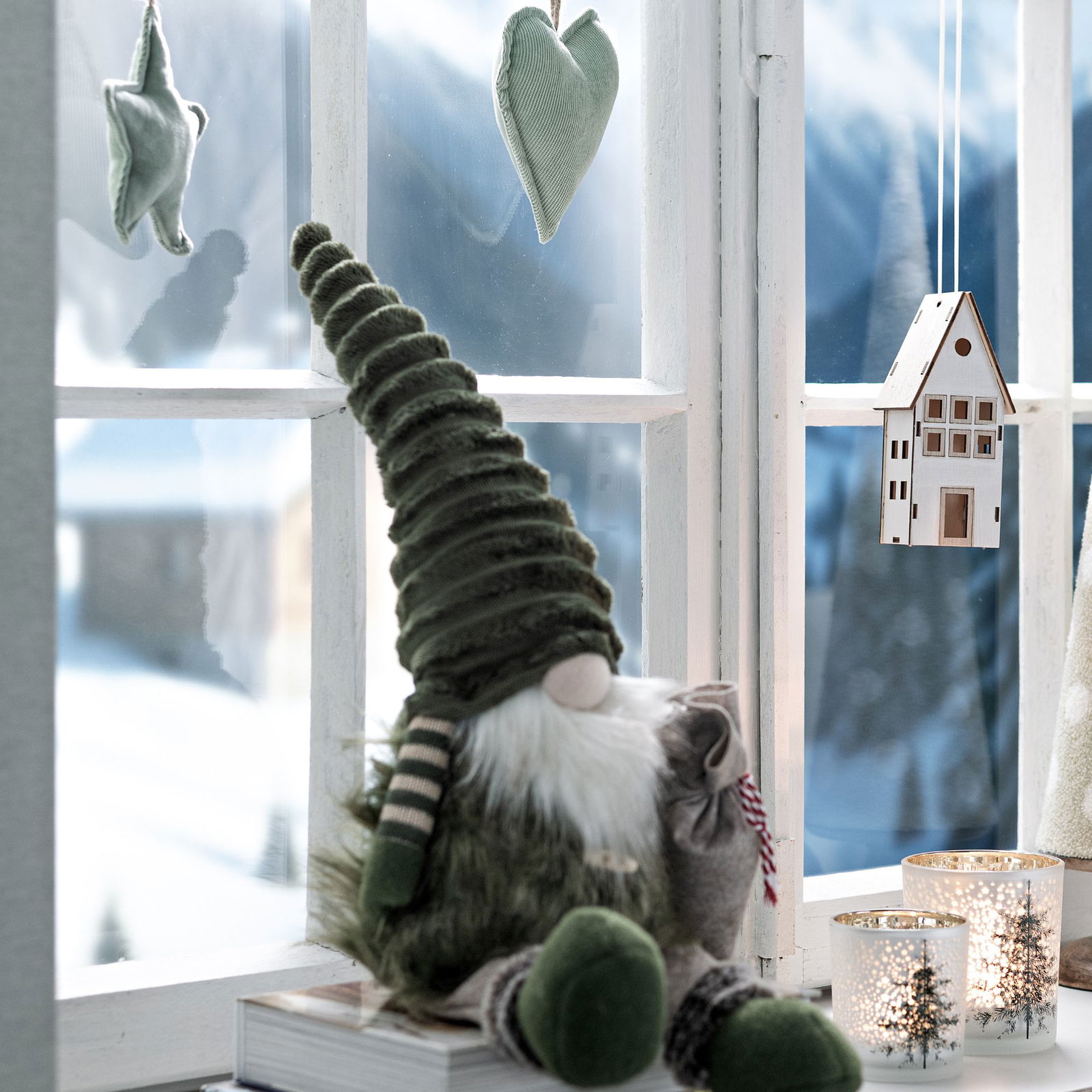 Suspension de Noël sapin/cœur/étoile en textile, triple, vert (L/H/P) 13x13x4cm
