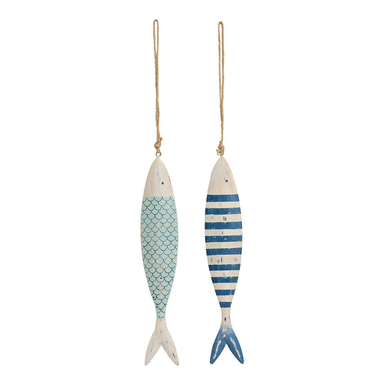 Suspension poisson en métal bleu 2 fois, (L/H/P) 4x25x1cm