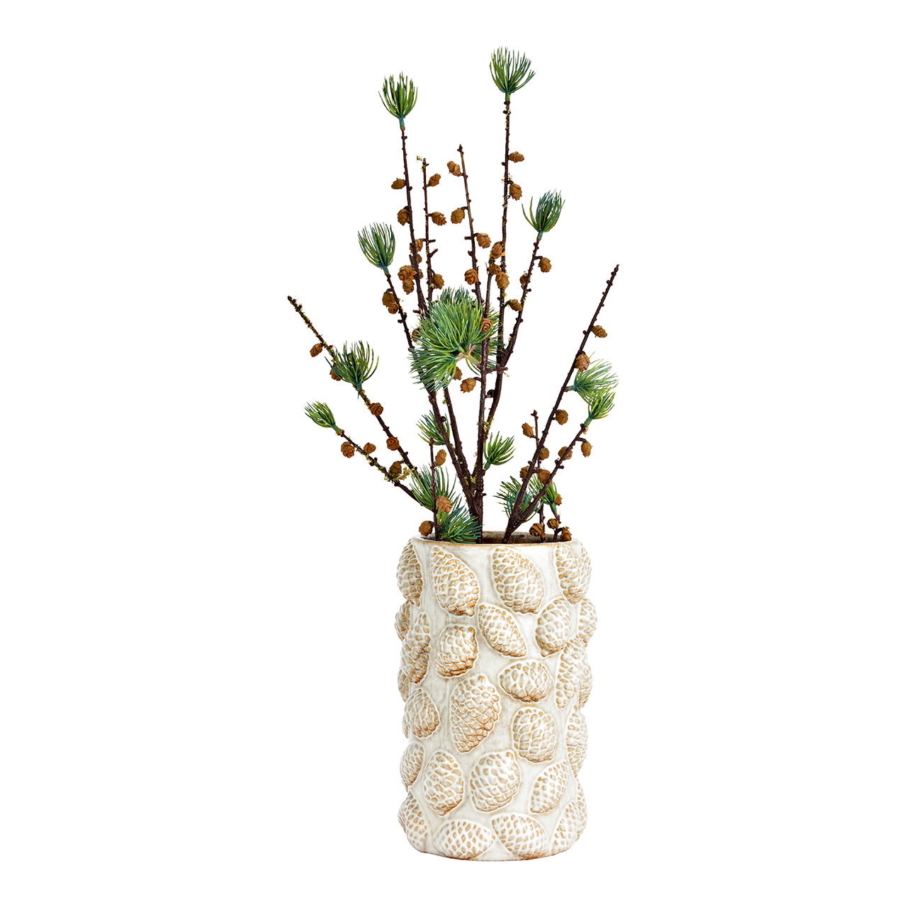 Vase Décor Pomme de pin en porcelaine, blanc/marron (L/H/P) 16x25x16cm