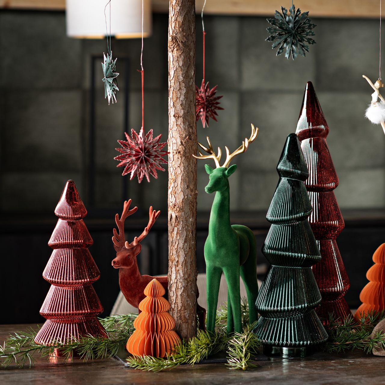 Albero di Natale in vetro, rosso (L/H/D) 16x44x16cm