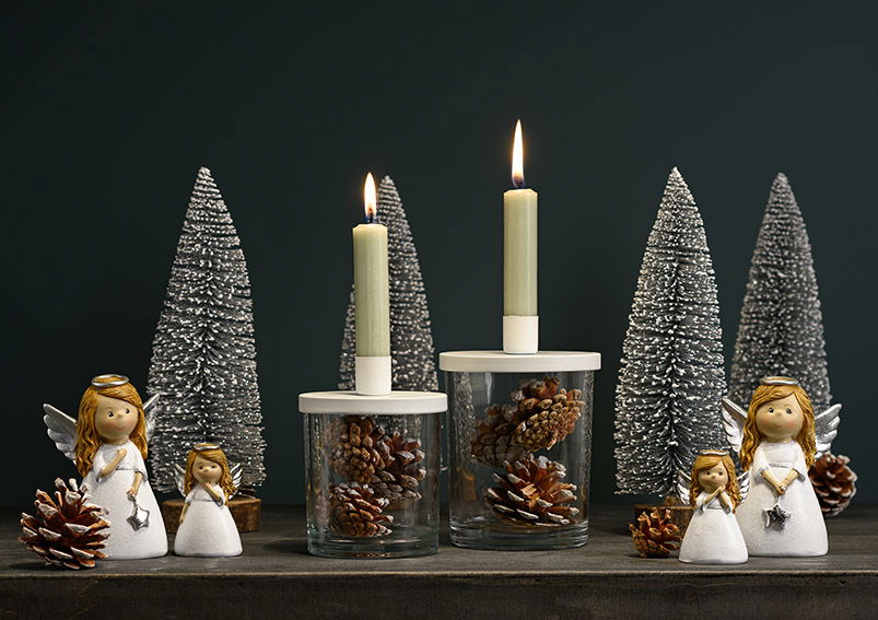Albero di Natale su tronco d'albero con glitter in plastica argentata (L/H/D) 7x25x7cm