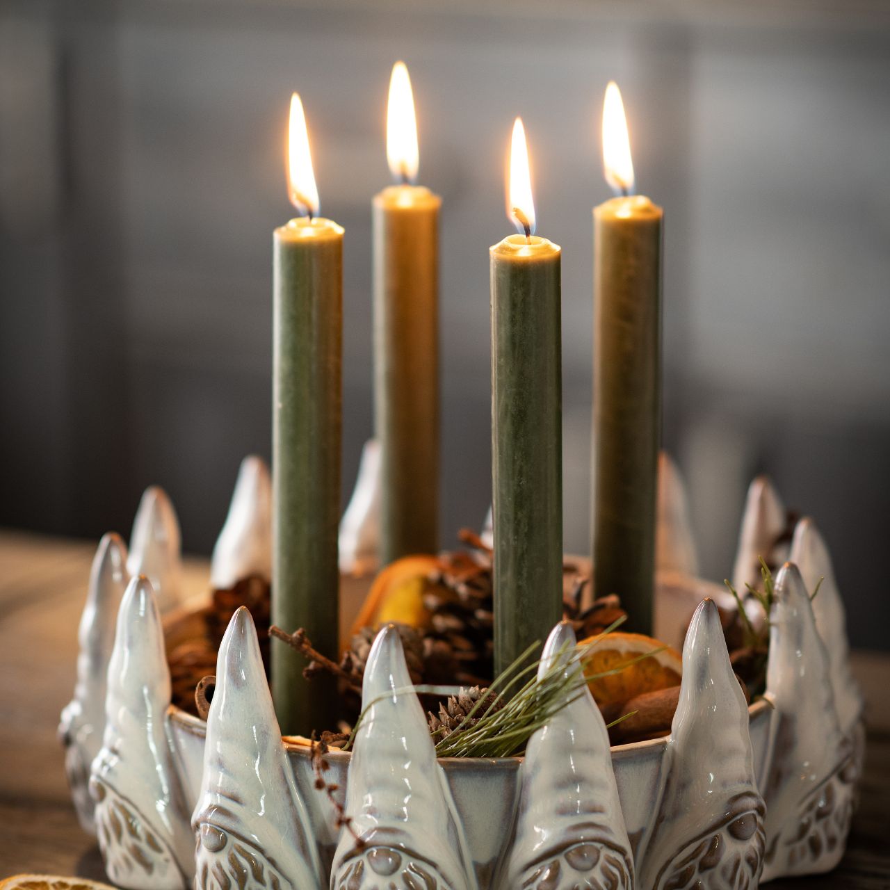 Codice prodotto: 10021810 Candela a bastoncino verde scuro a tinta unita Ø 2x18 cm Tempo di combustione circa 8 ore