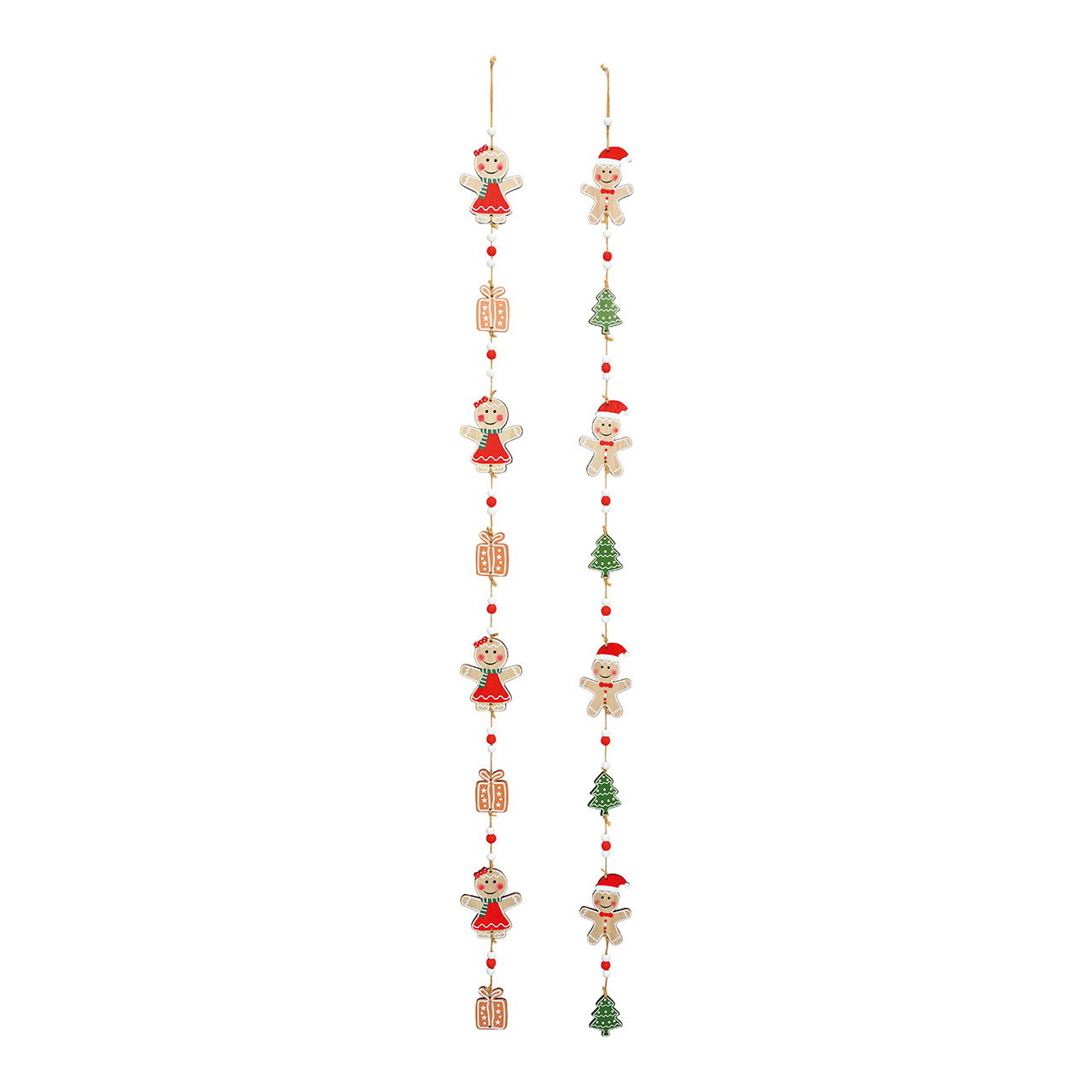 Ghirlanda di figure di pan di zenzero in legno naturale 2 pieghe, (L/A) 7x105x0,2cm