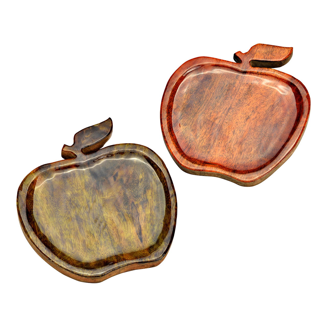 Piatto decorativo per mele in legno di mango, 2 pieghe, arancione/verde (L/H/D) 22x24x2cm