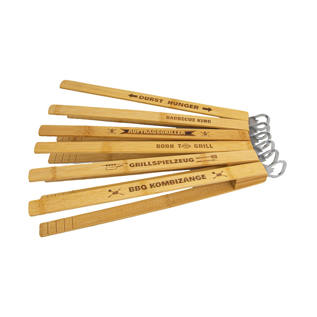Pinze da barbecue con apribottiglie, 6 motivi, legno, 33x2cm, 1 pz, naturale