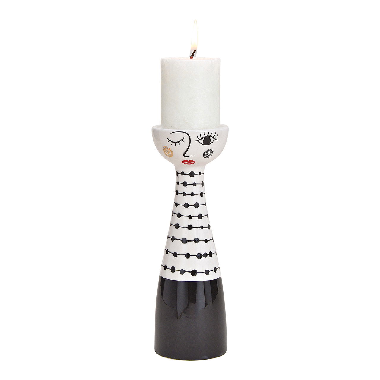 Portacandela donna in ceramica nero, bianco (L/H/D) 8x25x8cm