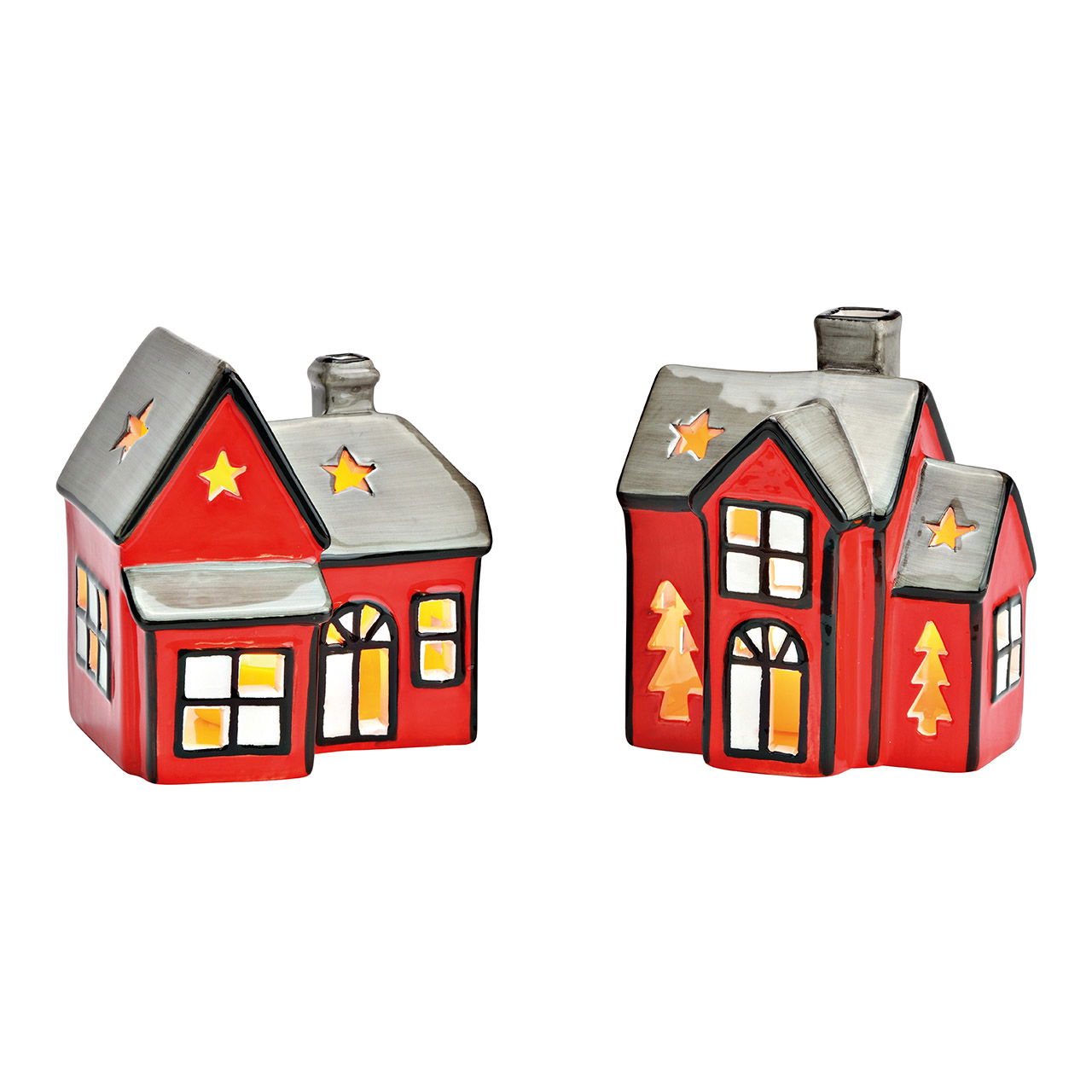 Portacandele in ceramica grigio, rosso 2 pieghe, (L/H/D) 11x12x9cm