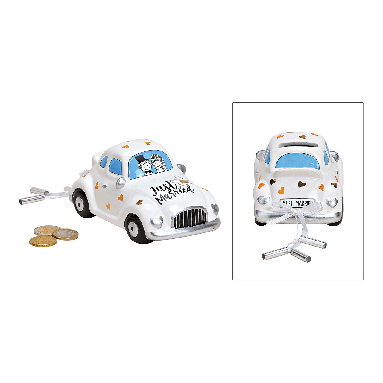 Salvadanaio per auto, Just Married in ceramica bianca (L/H/D) 16x7x8cm