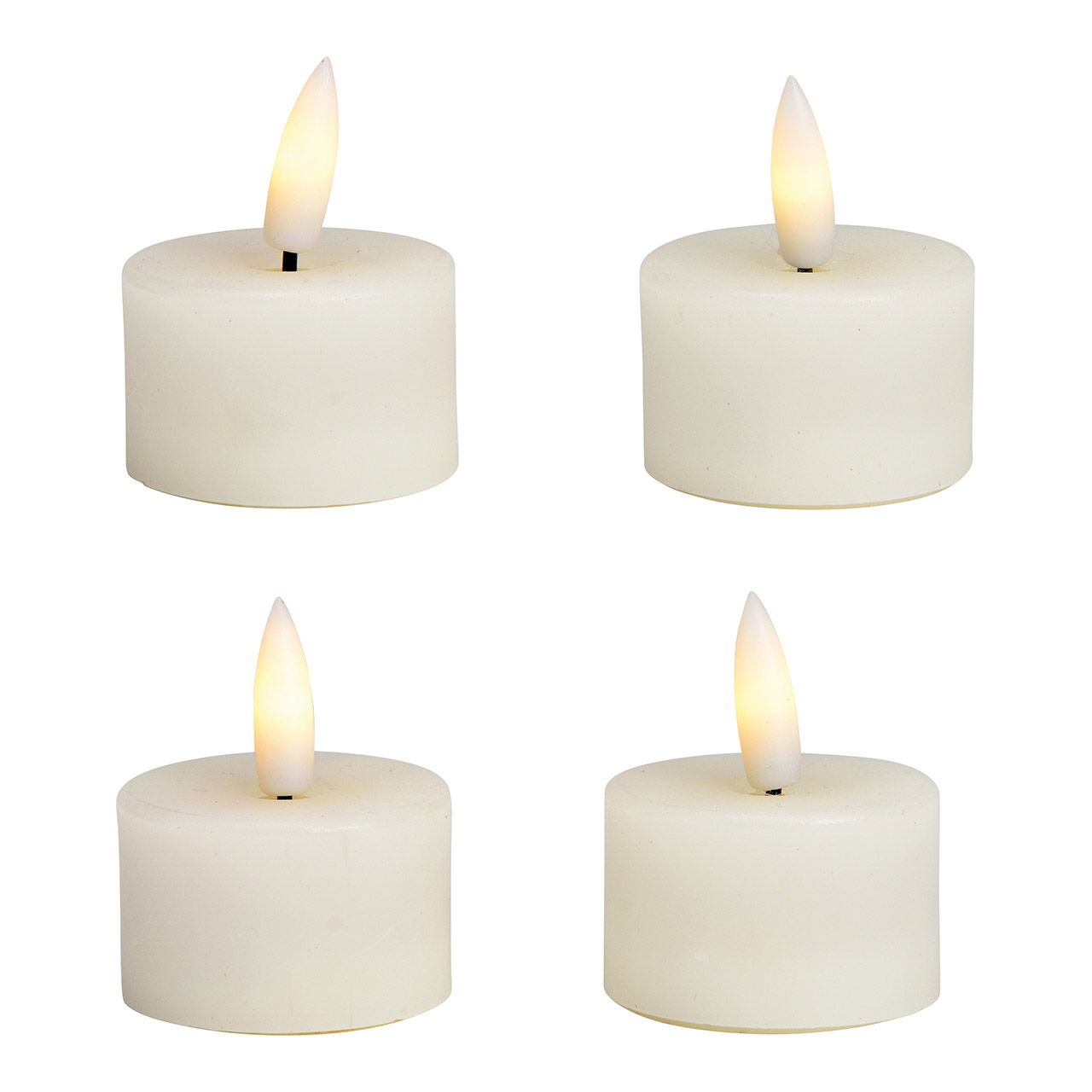 Set di 4 tea light a LED, in cera bianca (W/H/D) 4x4x4cm con timer funzionamento a batteria 4xCR2032 non incluso