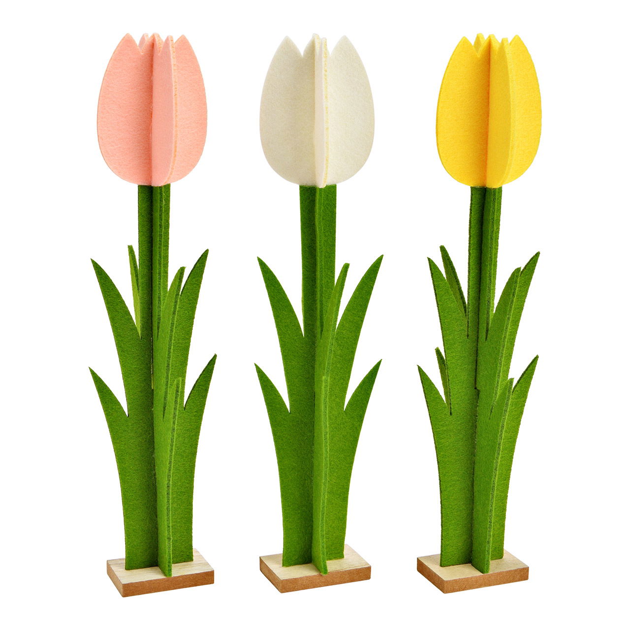 Supporto per tulipani in feltro/MDF, a 3 pieghe, giallo/rosa/bianco (L/H/D) 7x34x4cm