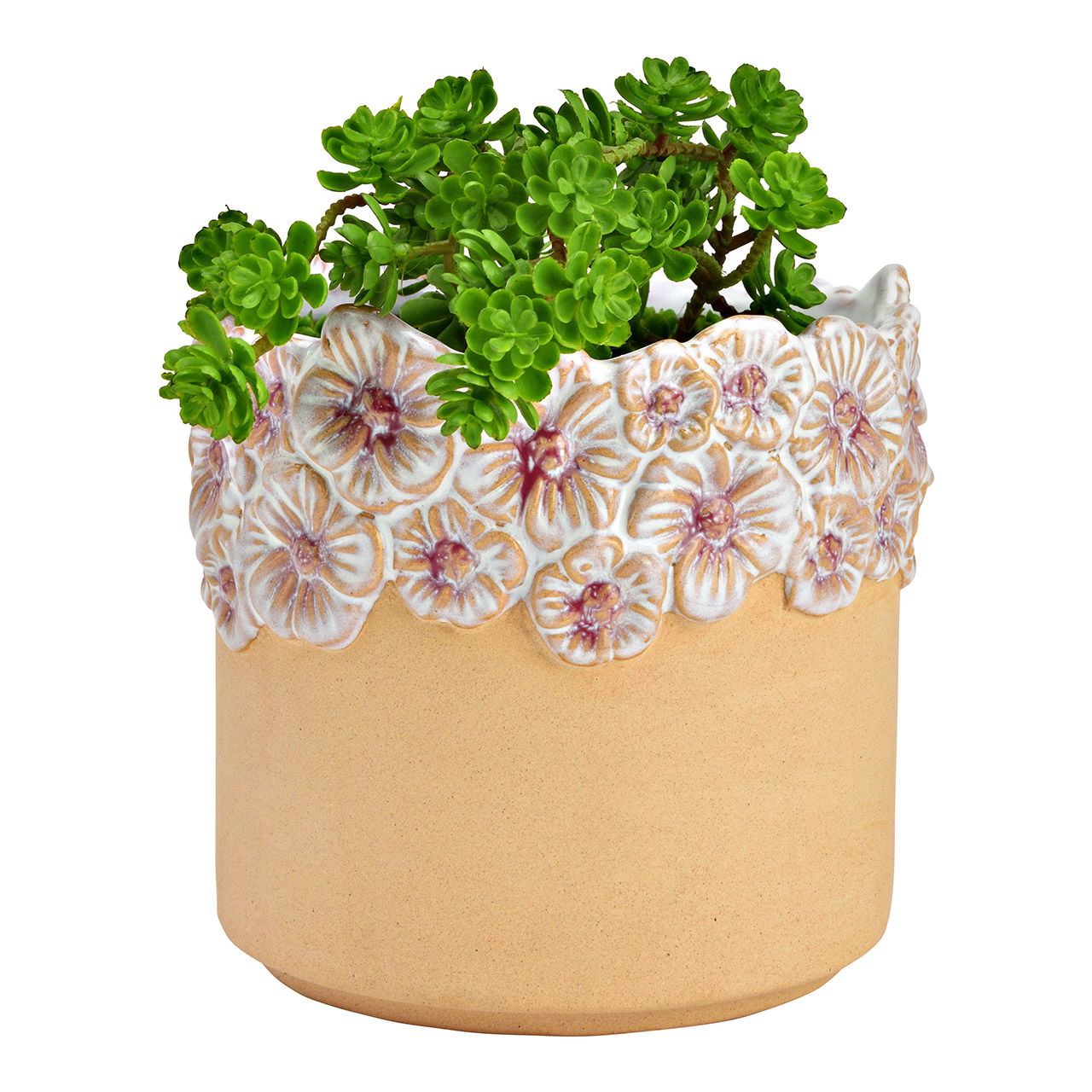 Vaso di fiori Decorazione a corona di fiori in gres, beige/viola Ø 14 cm
